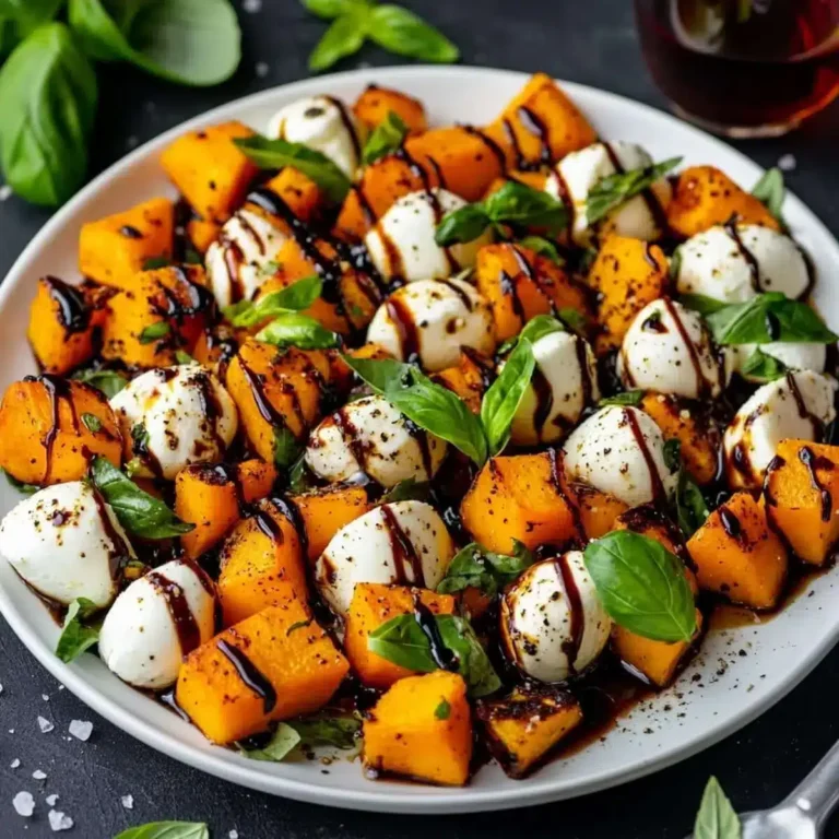 Introduction: This twist on the classic Caprese swaps tomatoes for roasted butternut squash, creating a comforting yet refreshing dish. The creamy mozzarella and sweet balsamic glaze make it a perfect side for fall and winter dinners.
