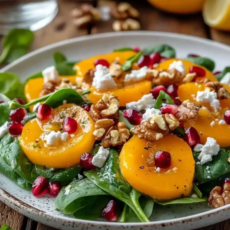 Introduction: This elegant salad is a vibrant mix of sweet persimmons, creamy goat cheese, and crunchy candied walnuts, making it a stunning choice for holiday dinners or festive gatherings.
