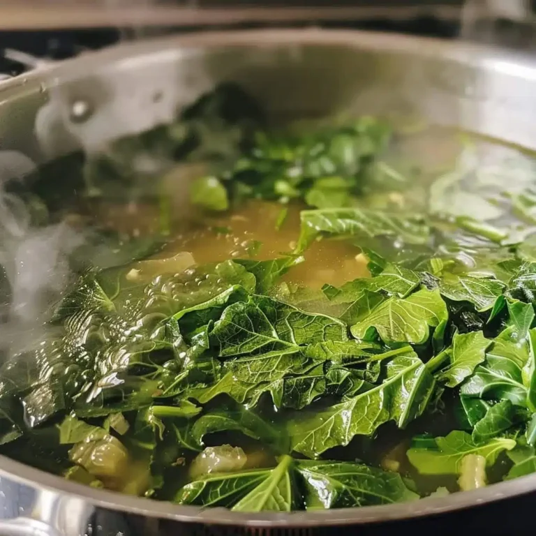 - Stir in the chopped collard greens (or kale) and cook for an additional 15–20 minutes, until the greens are tender but still vibrant.