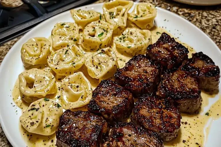 If you’ve ever stood in the kitchen at 6:42 PM wondering what on earth to feed your family (or yourself) that doesn’t involve cereal, you’re not alone. That’s exactly where this Garlic Butter Steak Bites & Creamy Pesto Alfredo Tortellini recipe steps in like your favorite pair of stretchy jeans—comforting, flattering, and reliable.