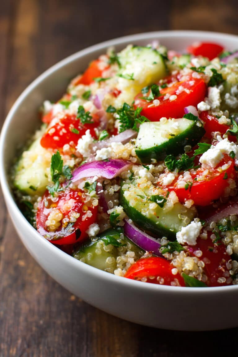 Let me tell you, the Greek Tomato Cucumber Quinoa Salad is like a breath of fresh air on a busy day. It’s a refreshing, protein-packed option that fits perfectly into the hectic lives of us busy women. Whether you’re a mom juggling school pickups and soccer practice or a professional balancing meetings and deadlines, this salad is your lunchtime savior. It’s nutritious, flavorful, and oh-so-easy to whip up!