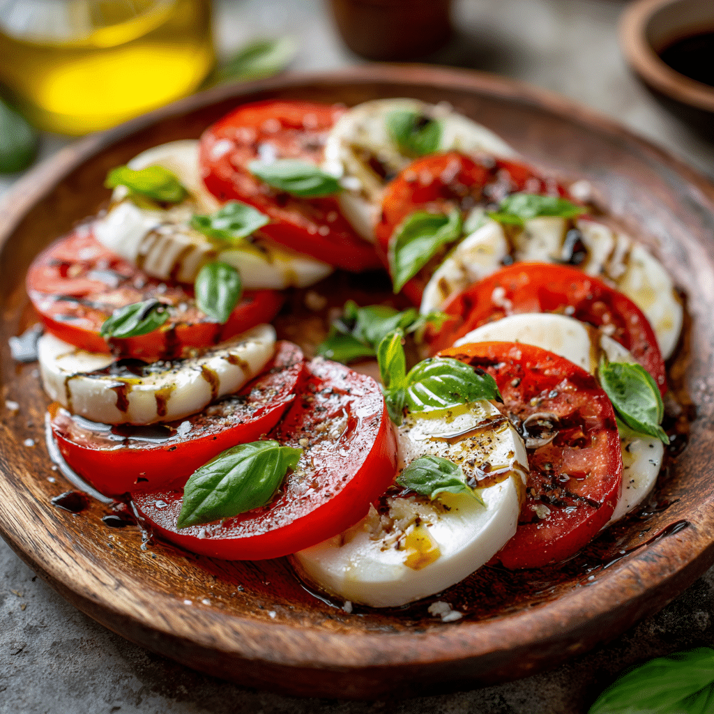 Each ingredient plays a starring role in this Italian Caprese Salad. The tomatoes bring a juicy sweetness, while the mozzarella adds a creamy texture. Fresh basil leaves offer a fragrant, peppery note that ties everything together. Extra virgin olive oil enhances the flavors, and a sprinkle of salt and pepper brings it all to life. If you’re feeling adventurous, a drizzle of balsamic glaze can add a tangy sweetness. And hey, if you want to switch things up, try using heirloom tomatoes or buffalo mozzarella. Printable measurements are provided at the article’s end, so you can keep this recipe handy.