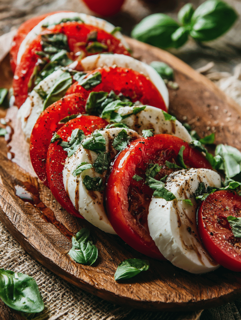 Now, let’s get to the fun part—arranging! On a platter, alternate slices of tomato and mozzarella. It’s like creating a beautiful, edible work of art.