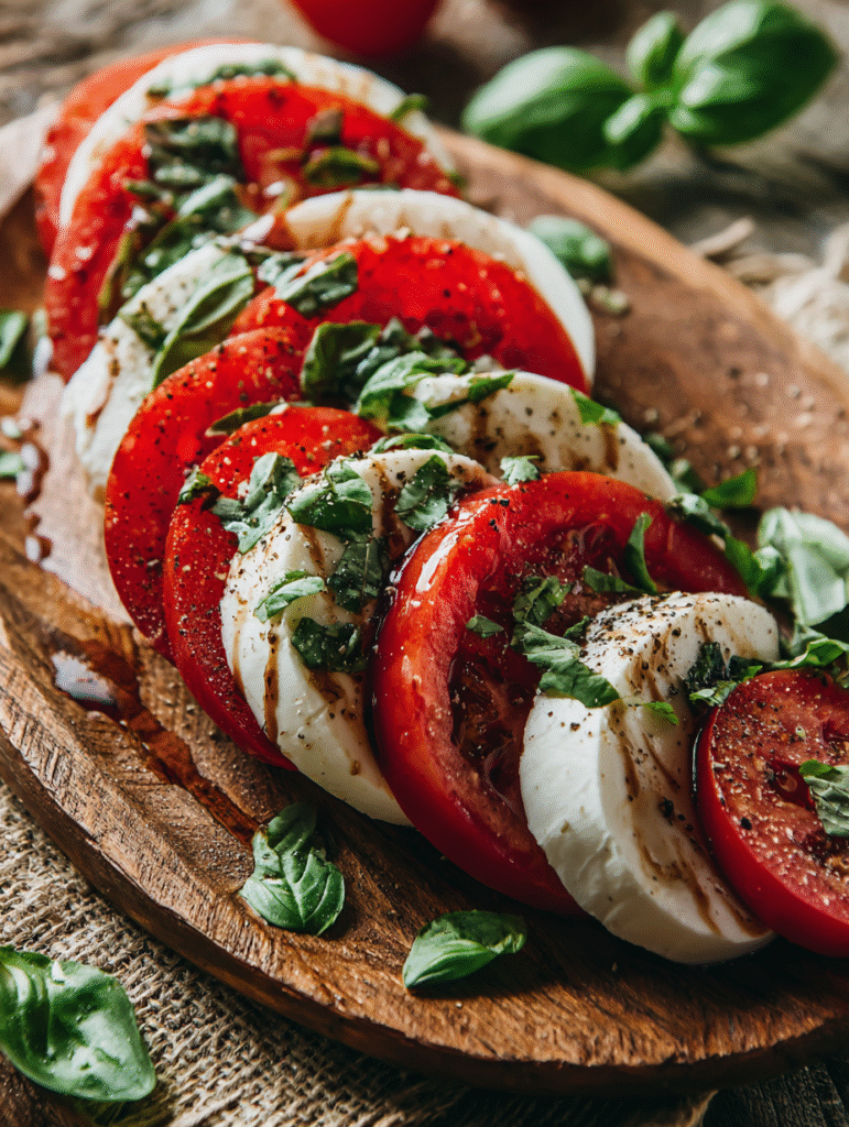 Start by slicing your tomatoes and mozzarella. Aim for even slices to ensure every bite is balanced. Then, wash and dry your basil leaves. It’s a simple step, but it makes all the difference in freshness.