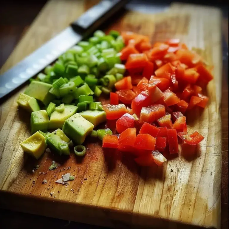 - Dice the avocado, celery, and red bell pepper into bite-sized pieces. Thinly slice the green onions and chop the parsley.