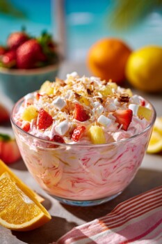 Pink Lemonade Fluff Salad is the no-bake, bring-the-smiles kind of dish that every summer gathering needs. It’s creamy, colorful, and completely crave-worthy. Whether you serve it in a trifle bowl for a party or sneak spoonfuls straight from the fridge (guilty), this retro-inspired favorite is sure to become a go-to.