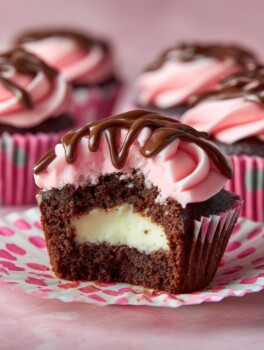 Think of these as a triple threat: decadent chocolate cupcakes, a surprise cheesecake center, and a crown of raspberry-infused buttercream, topped with a dreamy chocolate drizzle. They’re baked in one step and layered with flavors that are made to impress—perfect for birthdays, Valentine’s Day, or just because it’s Tuesday and you deserve it!