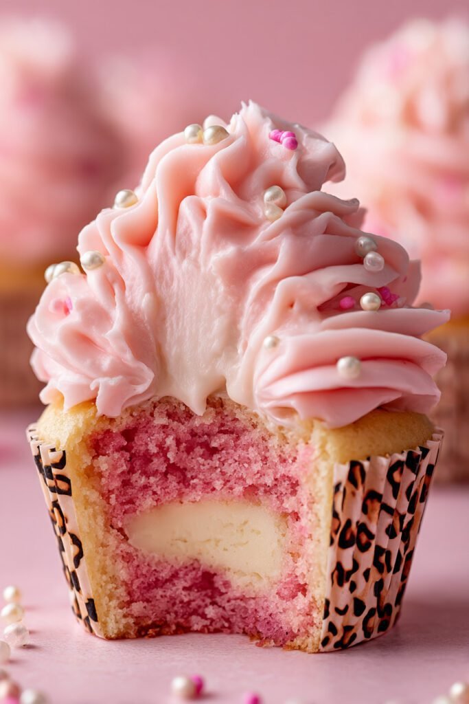 These aren’t just any cupcakes—they’re the kind you bring to birthdays, brunches, or simply to impress your coworkers (or yourself). Imagine biting into a soft, strawberry-flavored cupcake only to discover a rich, creamy cheesecake center hiding inside. Oh, and the strawberry buttercream on top? Light, fluffy, and bursting with real strawberry flavor.