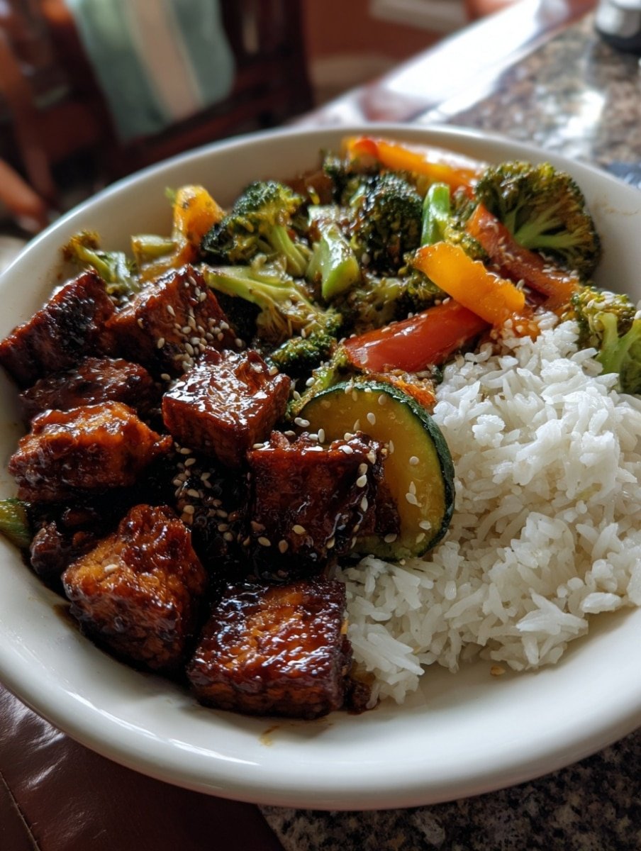 The flavors are family-friendly, with a delightful mix of crispy tofu and vibrant vegetables. The tofu, coated in a sticky teriyaki glaze, is like a little piece of heaven. And the veggies? They add a pop of color and crunch that makes every bite exciting. It’s a dish that brings everyone to the table, eager to dig in.